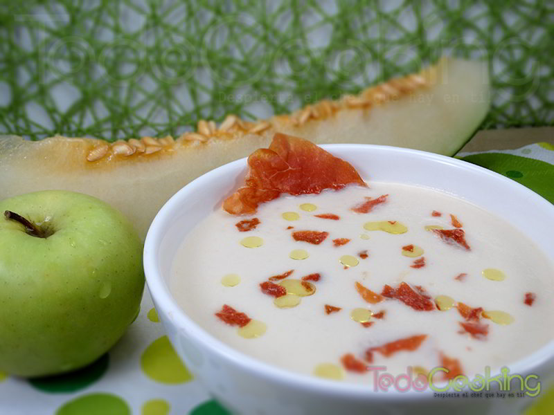 Sopa de melón y manzana con jamón