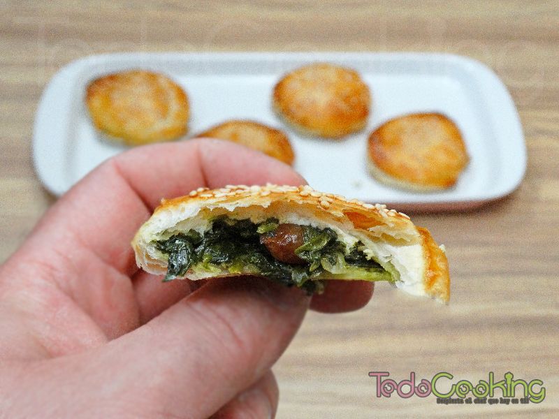 Pasteles de hojaldre rellenos de espinacas y ricotta con pasas y piñones