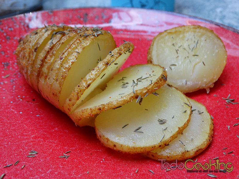 Lo que hacen que estas patatas Hasselback sean tan peculiares son sus cortes en forma de acordeón, la forma ideal para conseguir una patata bien asada, crujiente y sabrosa, porque las especias o hierbas penetran mucho mejor en ellas.